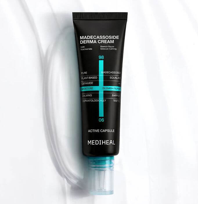 Madecassoside Derma Cream Mediheal - Крем с мадекассосидом разработан для успокоения и восстановления чувствительной или раздражённой кожи, используя силу мадекассосида, соединения, известного своими успокаивающими свойствами. Этот крем глубоко увлажняет, одновременно укрепляя естественный барьер кожи, что делает его идеальным для поддержания здоровой, сбалансированной кожи.