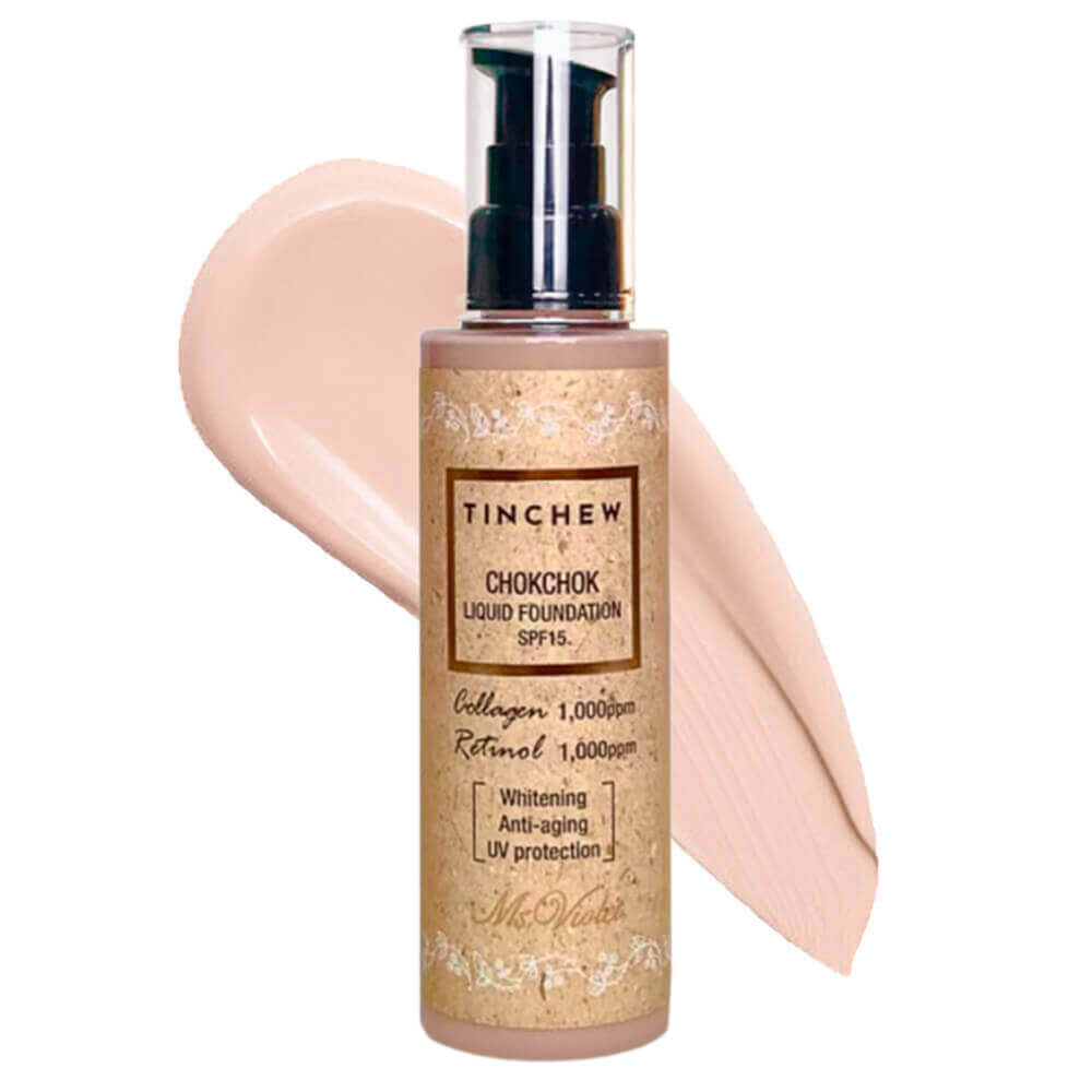 Увлажняющая тональная основа Tinchew Chokchok Liquid Foundation SPF15 обеспечивает естественное покрытие, которое маскирует несовершенства тона и создаёт эффект здоровой увлажнённой кожи.