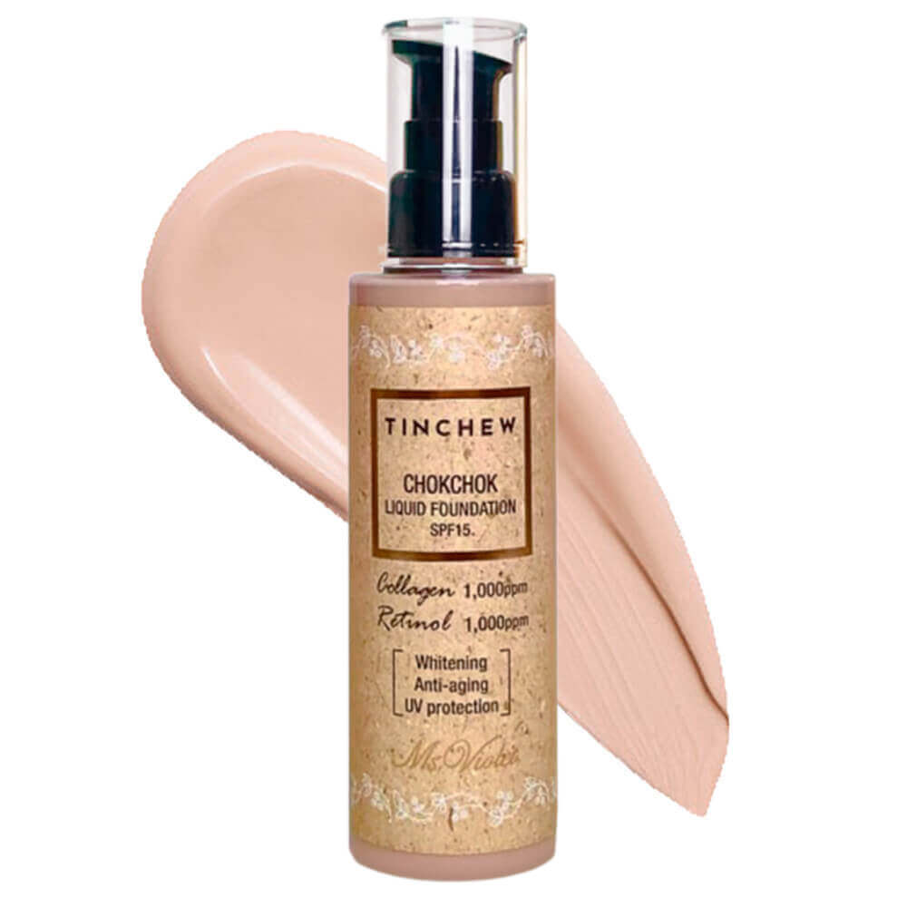 Увлажняющая тональная основа Tinchew Chokchok Liquid Foundation SPF15 обеспечивает естественное покрытие, которое маскирует несовершенства тона и создаёт эффект здоровой увлажнённой кожи.