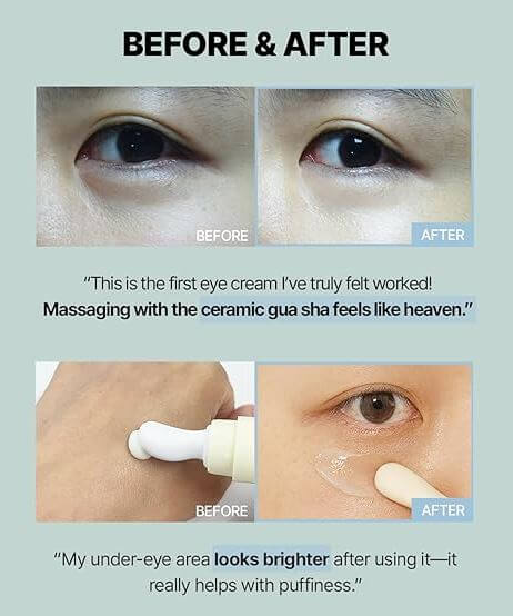 - Керамический наконечник Гуаша — встроенный аппликатор мягко массирует кожу вокруг глаз, обеспечивая охлаждение и лифтинг-эффект.
