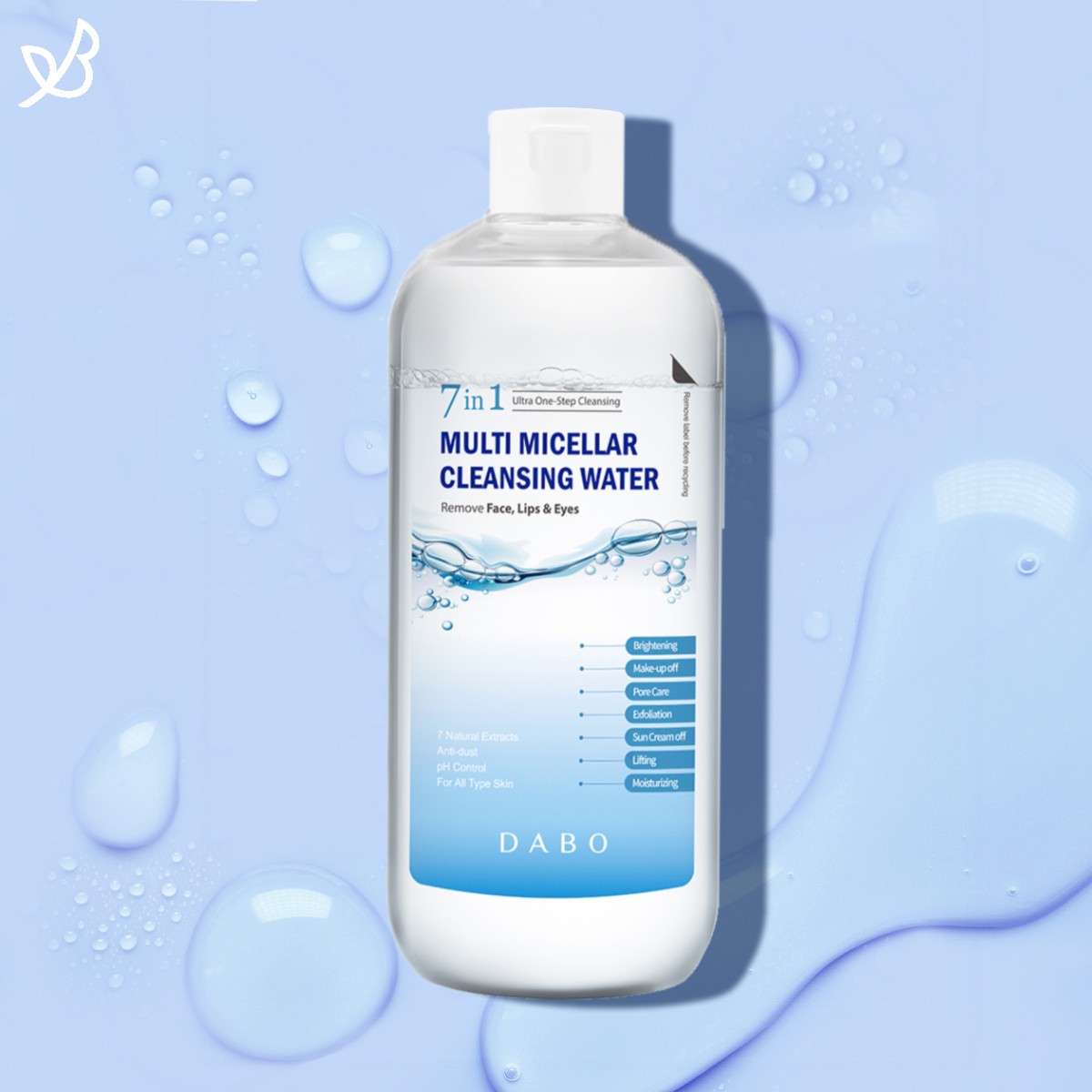 Многофункциональная мицеллярная вода 7 In 1 Multi Micellar Cleansing Water от корейского бренда Dabo — это универсальное средство «все в одном», разработанное для максимально бережного, но глубокого очищения кожи. Благодаря сбалансированному составу, она не только удаляет макияж, но и заменяет сразу несколько этапов ухода, экономя ваше время и сохраняя здоровье эпидермиса.