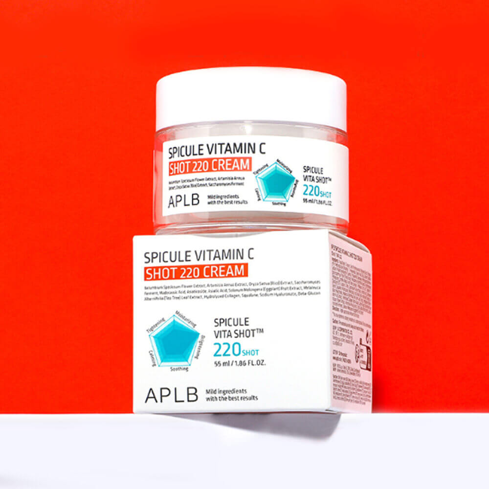 Крем APLB Spicule Vitamin C Shot 220 Cream объединяет мощные компоненты для восстановления, осветления и омоложения, подходит для борьбы с возрастными изменениями, тусклым цветом лица и сухостью кожи.