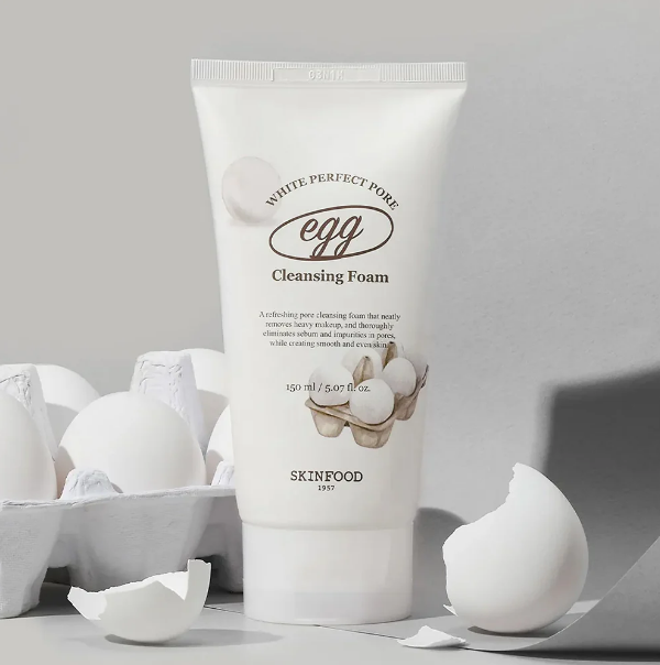 Очищающая пенка для сужения пор White Perfect Pore Egg Cleansing Foam от культового корейского бренда SKINFOOD — это проверенное временем средство для борьбы с расширенными порами и излишним жирным блеском. В основе формулы лежит яичный белок (альбумин), который славится своими уникальными очищающими и подтягивающими свойствами.