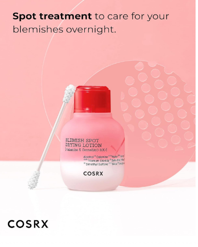 Двухфазное локальное средство против акне Cosrx AC Collection Blemish Spot Drying Lotion помогает в кратчайшие сроки подсушить и уменьшить очаг воспаления. Ускоряет процесс заживления прыщика и помогает избавиться от постакне.