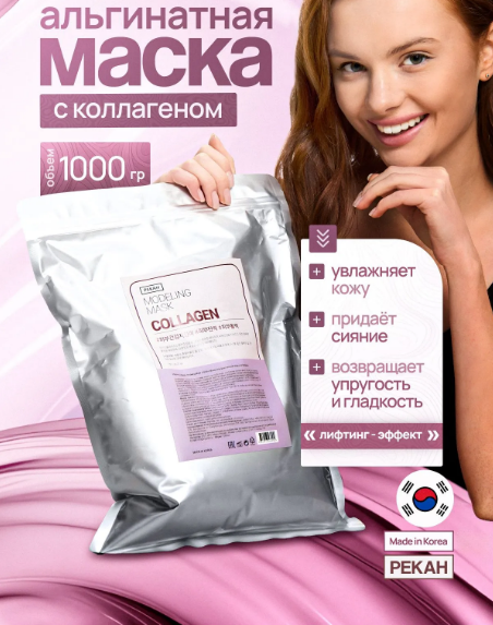 Альгинатная маска с коллагеном Collagen Modeling Mask от корейского бренда Pekah — это профессиональный продукт в объеме 1000 мл (1 кг), созданный для интенсивного восстановления эластичности, глубокого увлажнения и укрепления защитного барьера кожи. Маска работает как мощный компресс, насыщая клетки белком молодости и возвращая лицу естественное сияние.