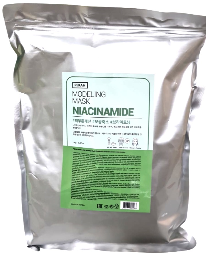 Альгинатная маска с ниацинамидом Niacinamide Modeling Mask от корейского бренда Pekah — это профессиональное средство в объеме 1000 мл (1 кг), разработанное для интенсивного осветления, борьбы с пигментацией и выравнивания тона кожи. Маска идеально подходит для тусклой, уставшей кожи, а также для борьбы с постакне и расширенными порами.