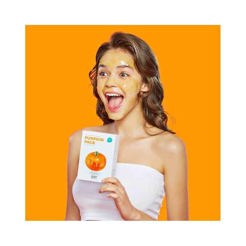 Маска SKIN1004 Zombie Beauty By Pumpkin Pack — насыщенных питательным средством, которое увлажняет, смягчает и разглаживает кожу, оживляя и придавая естественное сияние, устраняет шелушение и сухостьПродукт с густой текстурой желе успокаивает, повышает эластичность и упругость, уменьшает выраженность морщин, заряжает энергией, устраняет тусклость и неровный тон. Гипоаллергенное средство не провоцирует раздражение.Гигиеничный формат пирамидок делает нанесение маски гигиеничным и комфортным. В набор входит мини-кисть для нанесения маски.Продукт можно использовать в качестве экспресс-средства для быстрой борьбы с сухостью и шелушениями, а также в формате ночной маски для более глубокого восстановления.Формула основана на 61% экстракте тыквы, содержащим каротиноиды и витамины E, а также цинк и жирные кислоты. Тыква сглаживает микрорельеф, делает кожу гладкой и упругой. Мёд в составе средства придаёт сияние, повышает упругость, тонизирует и повышает местный иммунитет. Дополнительные действующие компоненты: