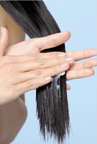 После мытья шампунем нанесите необходимое количество средства на влажные волосы.
