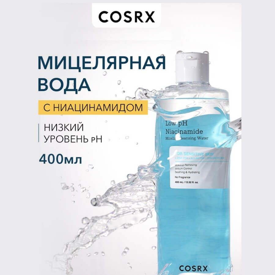 Мицеллярная вода COSRX Low pH Niacinamide Micellar Cleansing Water — средство для снятия макияжа, разработанное специально для обладателей чувствительной кожи. Деликатно очищает, не вызывает сухости и не раздражает глаза.