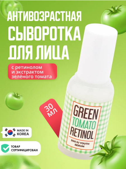 - Ретинол стимулирует обновление клеток и помогает сократить морщины, экстракт зелёного томата оказывает антиоксидантную защиту, защищая клетки кожи от негативных факторов окружающей среды, способствующих раннему старению.