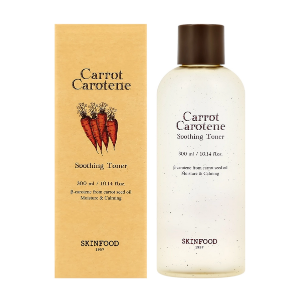 Успокаивающий тонер на основе морковной воды Carrot Carotene Soothing Toner от корейского бренда SKINFOOD — это идеальное средство для базового ухода за чувствительной, склонной к покраснениям и стянутости кожей. Тонер обладает легкой водянистой текстурой, которая мгновенно восстанавливает уровень влаги после умывания и подготавливает лицо к дальнейшему нанесению сыворотки или крема.
