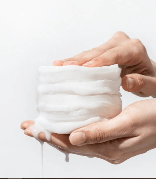 Широкий мягкий пэд можно прикладывать на любой участок кожи. Его плетеная хлопковая текстура удерживает обильное количество эссенции и не высыхает на коже, даже если оставить пэд надолго.
