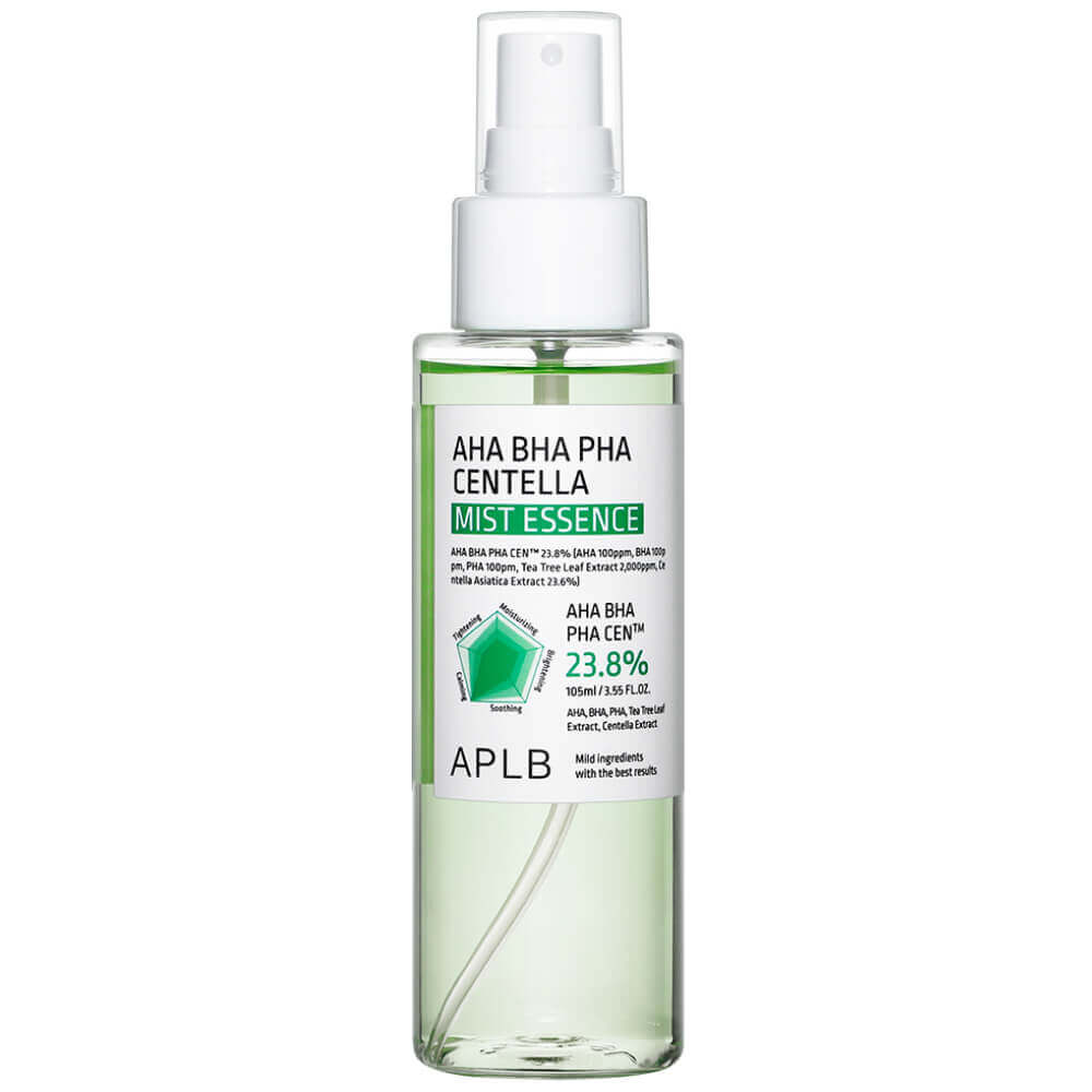 Успокаивающий мист-эссенция против воспалений APLB AHA BHA PHA Centella Mist Essence помогает быстро снять зуд и раздражение, избавить от сухости и восполнить недостаток влаги. Ускоряет заживление акне и устраняет красноту, тонизирует и нормализует гидролипидный баланс кожи. Мист можно использовать на этапе тонизирования, а также в течение дня для дополнительного увлажнения.